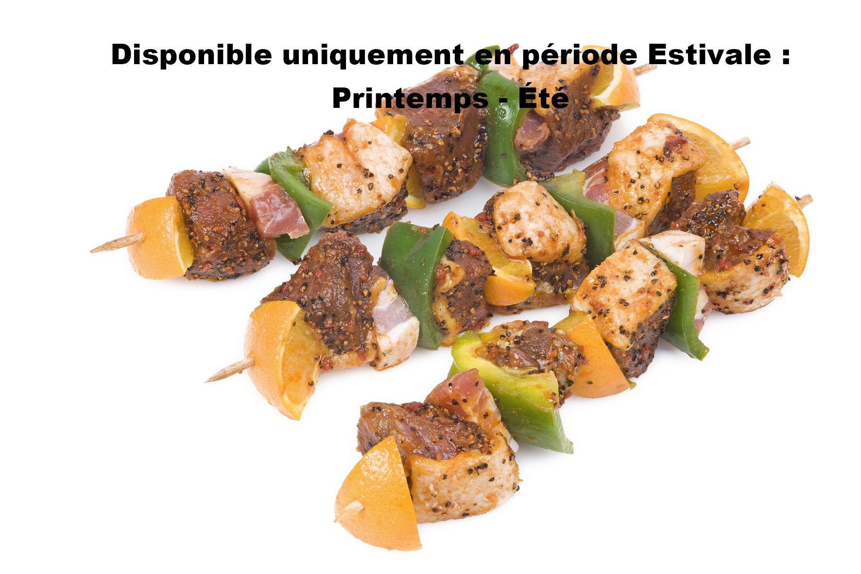 Préparée artisanalement avec des filets de canard, cette recette classique de canard à l'orange est relevée par les 3 poivres concassés. Une brochette noble, où le feu des poivres est éteint par la douceur de l'orange.